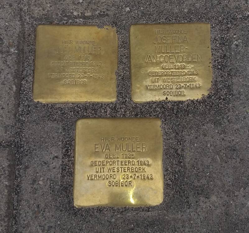 Eva Muller wordt op 19 april 1936 in Hoogeveen geboren, ze wordt op 7 jarige leeftijd in Sobibor vermoord op 23 juli 1943.