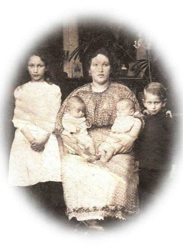 Klara Polak -Nathans met haar kinderen. Op schoot de tweeling Betsy Aaltje (Bep) en Carolina Bertha (Lieneke). Links haar dochter Bettje (Betty) en rechts haar zoon Simon. Foto April 1919 - Joods Monument